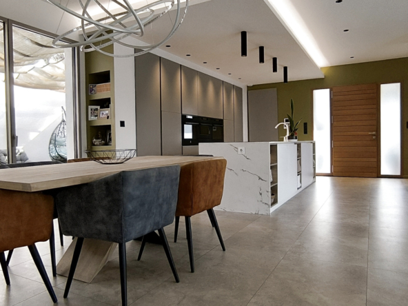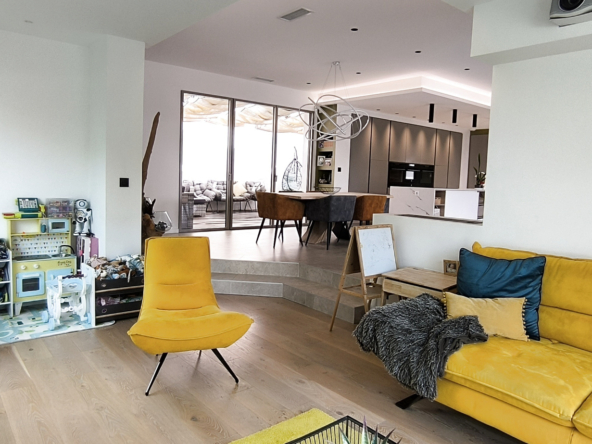 Au cœur de ses 163 m2 habitables, un vaste espace de vie de 68 m2, baigné de lumière, réunit salon, salle à manger et cuisine entièrement équipée. Une majestueuse baie à galandage efface la frontière dedans/dehors pour prolonger la pièce sur une belle terrasse et un patio de 31 m2.