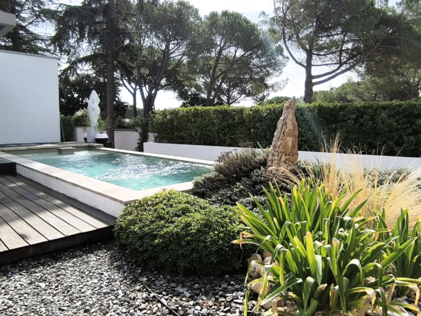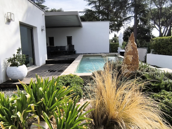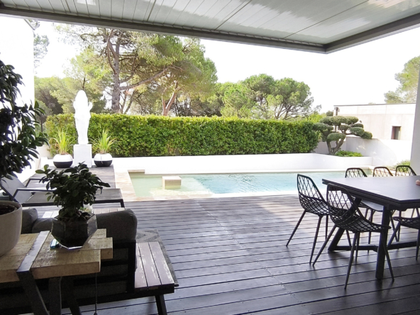 L&L Immobilier a le plaisir de vous présenter, à Nages-et-Solorgues, une villa contemporaine d’exception (2020) posée sur un terrain clos de 1 036 m2. Pensée pour un art de vivre actuel, elle conjugue lignes épurées, volumes généreux et finitions premium dans un environnement calme et très recherché.