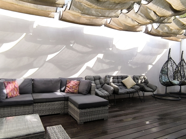 Côté extérieur, le décor est résolument resort : piscine à débordement, vaste terrasse, terrain de pétanque pour des moments conviviaux, et de larges espaces de stationnement. Un garage de 30 m2 complète l’ensemble. Confort moderne garanti par une climatisation gainable Airzone et une cheminée à l’éthanol.