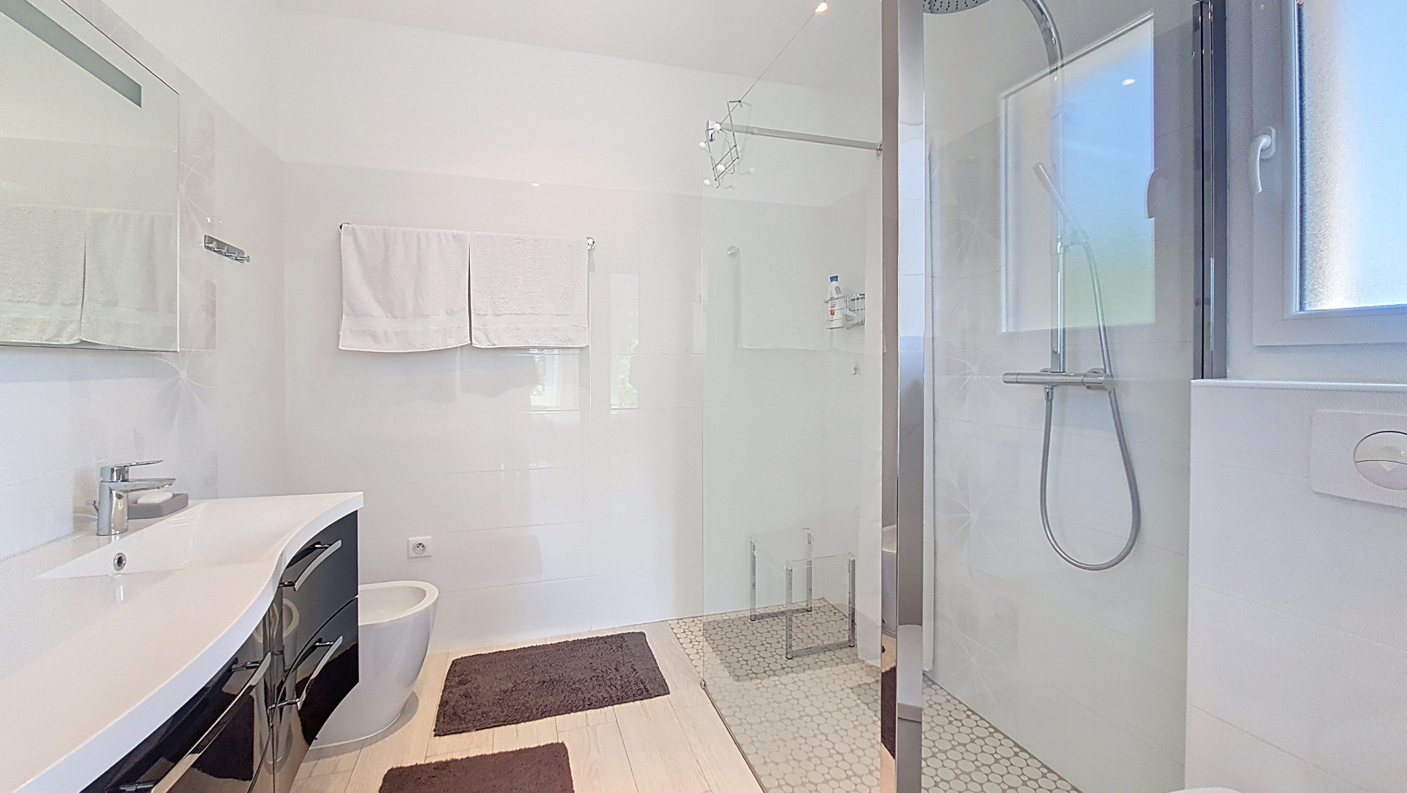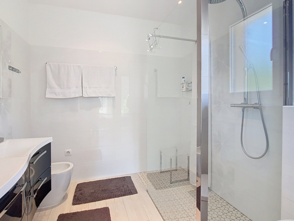 Concernant le mode de chauffage la maison est équipée d’un chauffage au sol basse température grâce à une pompe à chaleur thermodynamique récente, et de climatisations réversibles installées dans toutes les pièces, assurant un confort optimal en toute saison.
