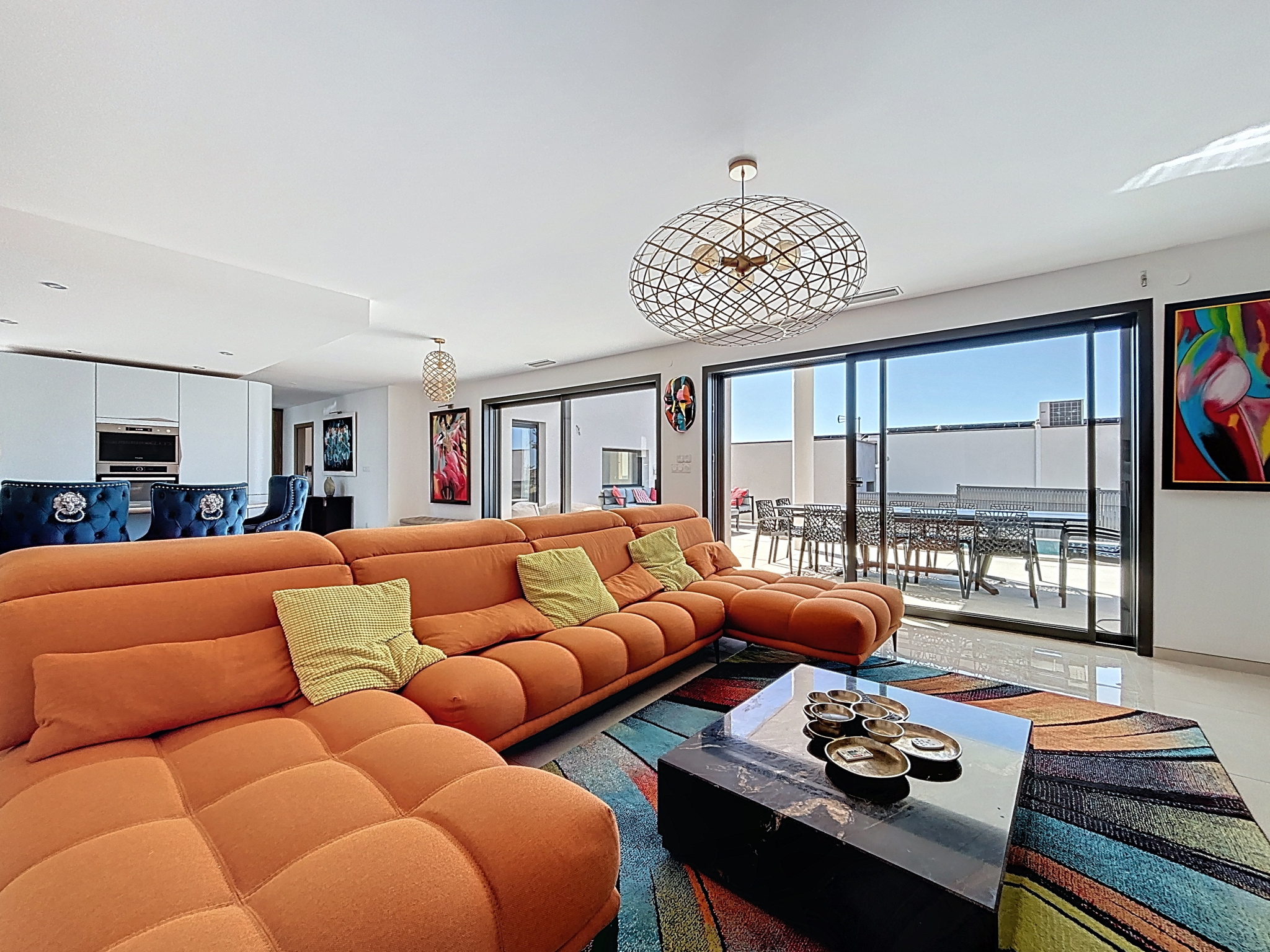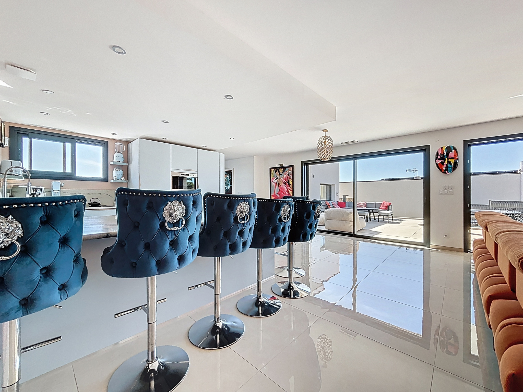 Implantée sur un terrain de 700 m2 limitrophe d’un espace naturel, elle propose un cadre de vie privilégié. Laissez-vous séduire par un espace de vie lumineux avec de larges ouvertures sur une terrasse et une piscine unique, sublimée par un carrelage balinais. La cuisine ouverte, dotée d’un plan en marbre du Brésil, est un espace de convivialité. La suite parentale, véritable cocon avec accès direct à l’extérieur et vue sur la piscine, dispose d’un dressing sur mesure et d’une salle de bains avec douche à l’italienne et baignoire panoramique. Une deuxième chambre en suite offre également un accès au jardin.