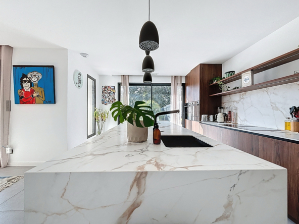 Édifiée sur un terrain paysager sans vis-à-vis, cette villa développe 183 m2 habitables répartis harmonieusement.