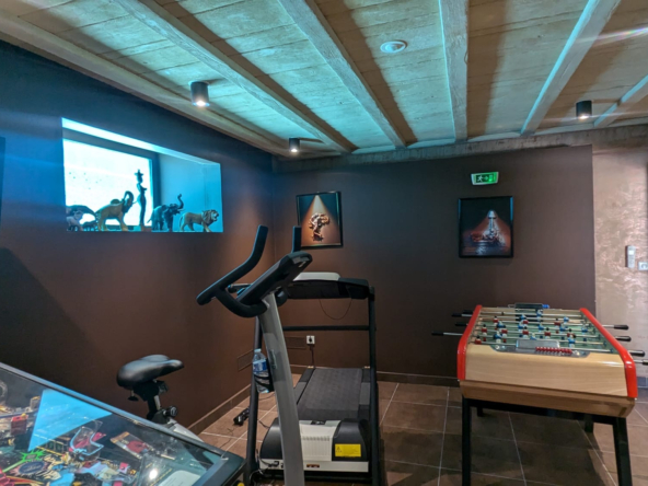 Agencement ingénieux : Les demi-niveaux, les terrasses solarium et le sous-sol aménagé en salle de cinéma et cave à vin, offrent une grande diversité d’espaces de vie.