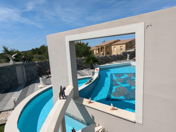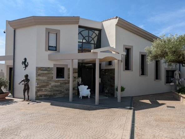 L&L Immobilier vous présente une villa d’architecte de prestige, érigée en 2010, offrant 377 m2 d’espace de vie luxueux au cœur du charmant village de Poulx. Cette propriété unique se distingue par son architecture audacieuse, ses proportions généreuses et la qualité irréprochable de ses matériaux.
