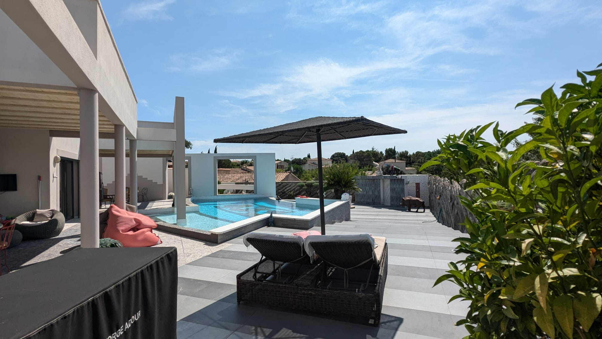 Prestations luxueuses : Aspiration centralisée, pompe à chaleur hydrothermique, plancher chauffant, piscine à débordement au sel, studio indépendant… chaque détail a été pensé pour offrir un confort absolu.